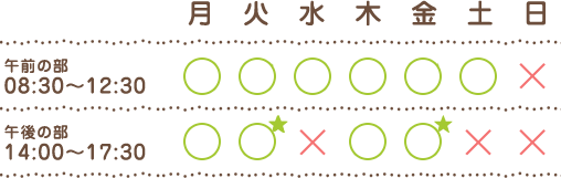 | ★ | 火曜日・金曜日の14:00〜15:00は予防接種専用の時間帯です。 |